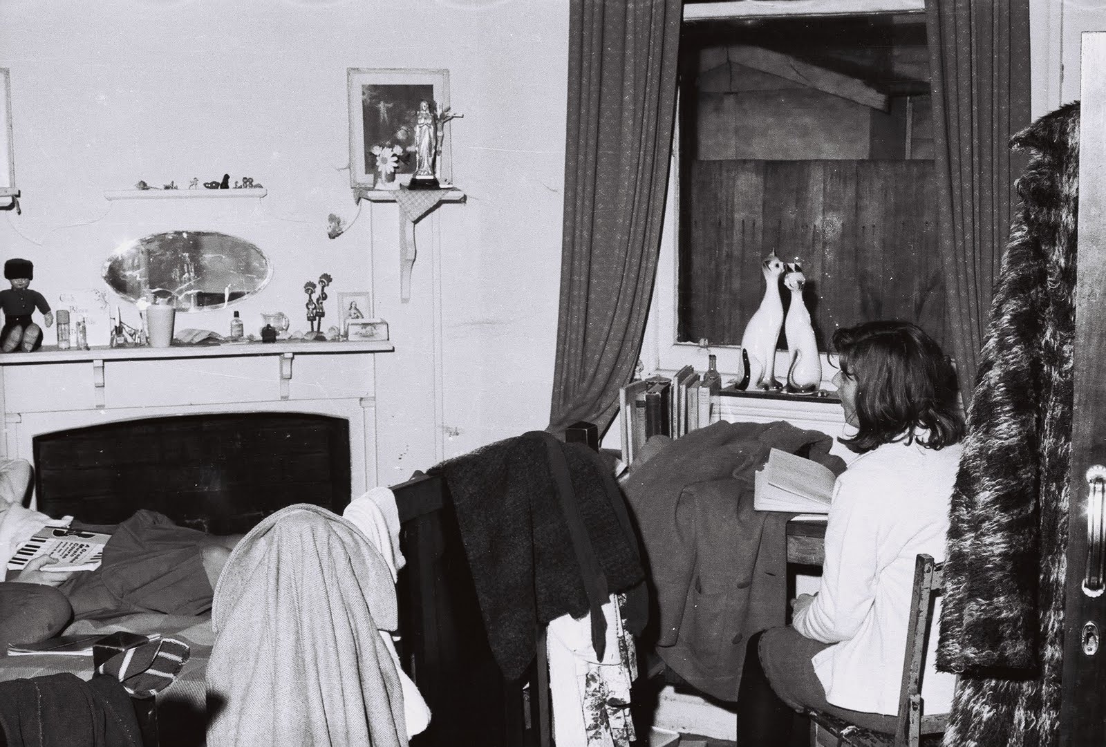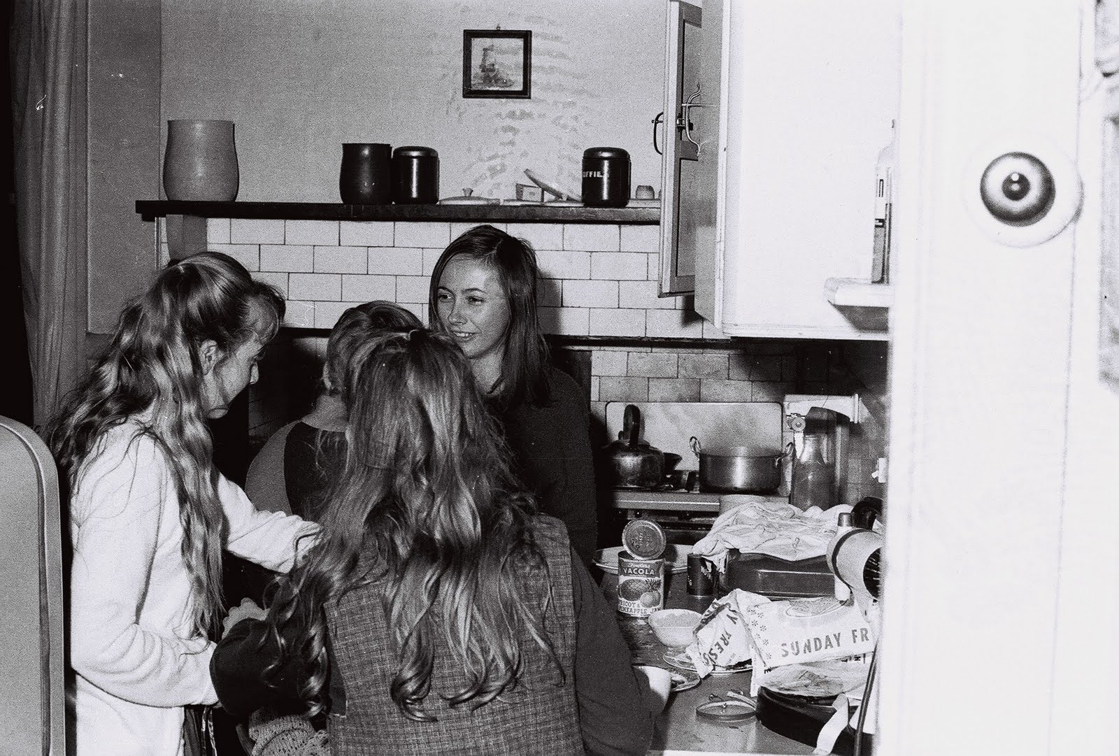 And in this photo, I’m the one on the left with long fair hair. The girl facing the camera was a visitor. The other two are siblings. In black and white the room may not look quite so bad as I once imagined, the mess and the clutter that is, but in my memory it is.