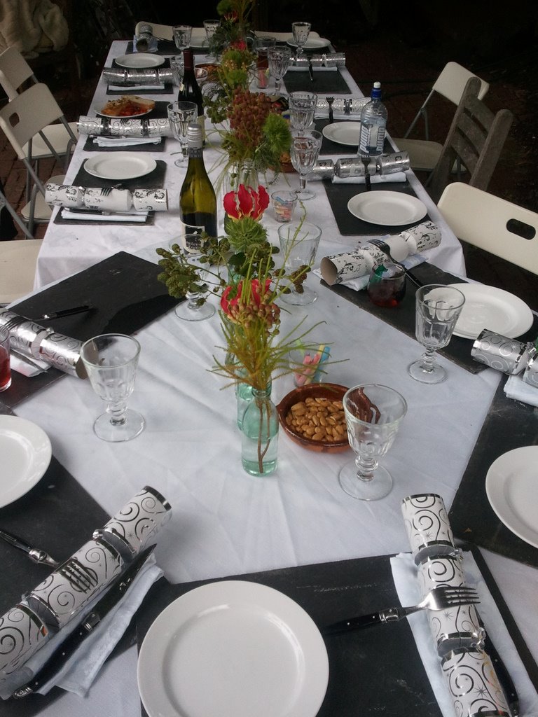 When the rain came crashing down on Christmas afternoon, gate crashing Christmas, we all scurried indoors taking with us the perishables, the things that could not stand a downpour, including the flowers that stood in a line in small bottles in the middle of the table.